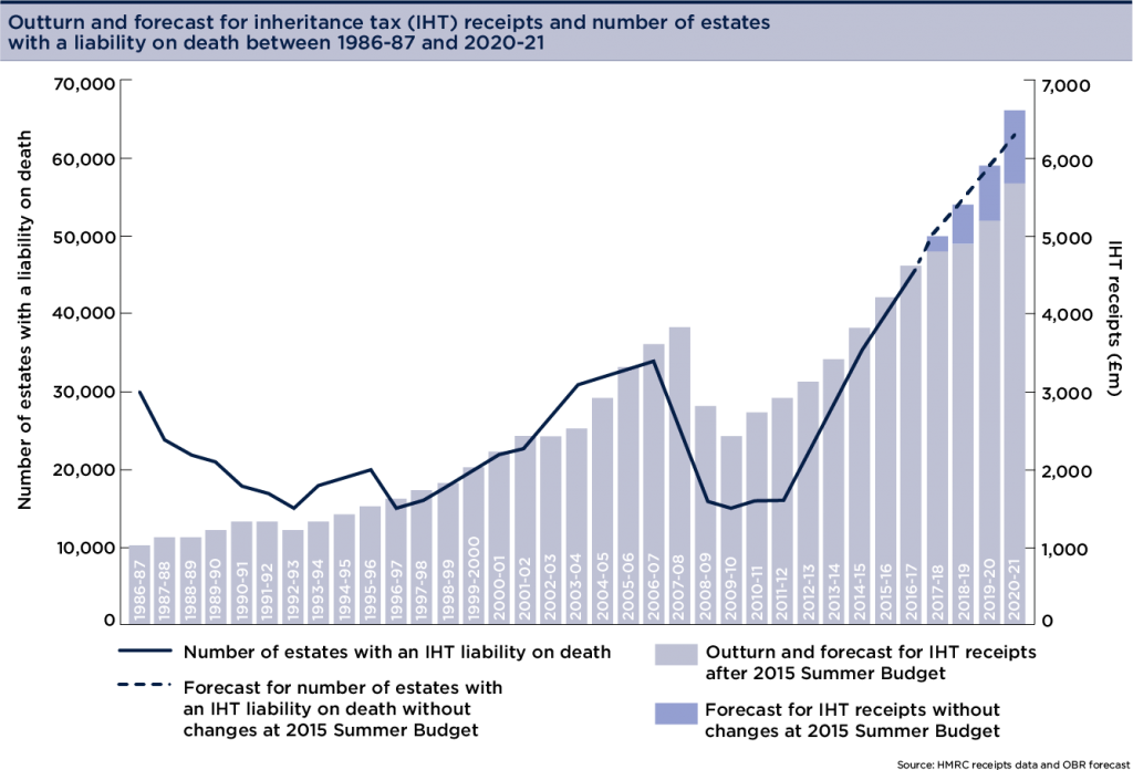 HMRC has just announced a record take of inheritance tax for the last tax year, with £4.6bn due to be collected from the estates of thousands of people who have passed away, a figure that is expected to rise to £5.6bn by 2021, as demonstrated in the chat below.